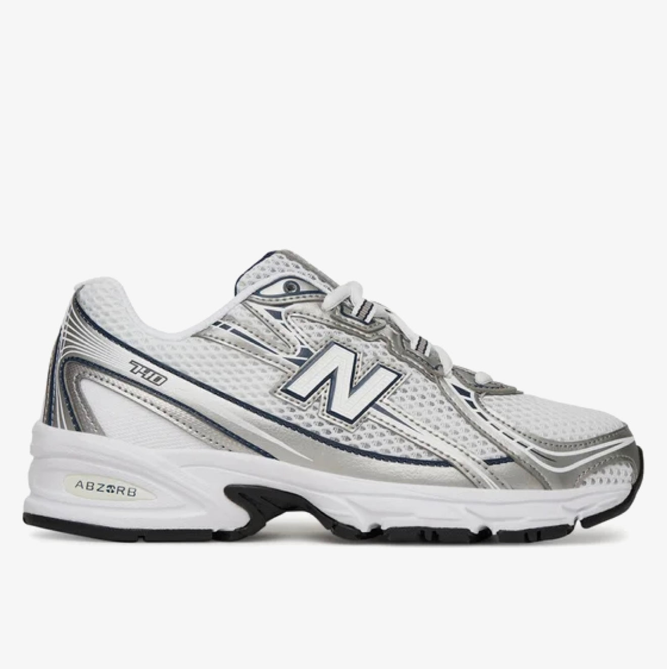 Le sneakers New Balance 740 in argento e blu combinano design classico e materiali di alta qualità per garantire comfort...
